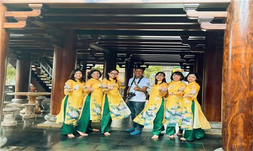 Một đoàn khách bên Trúc Lâm Anh checkin tại Ako Dhong